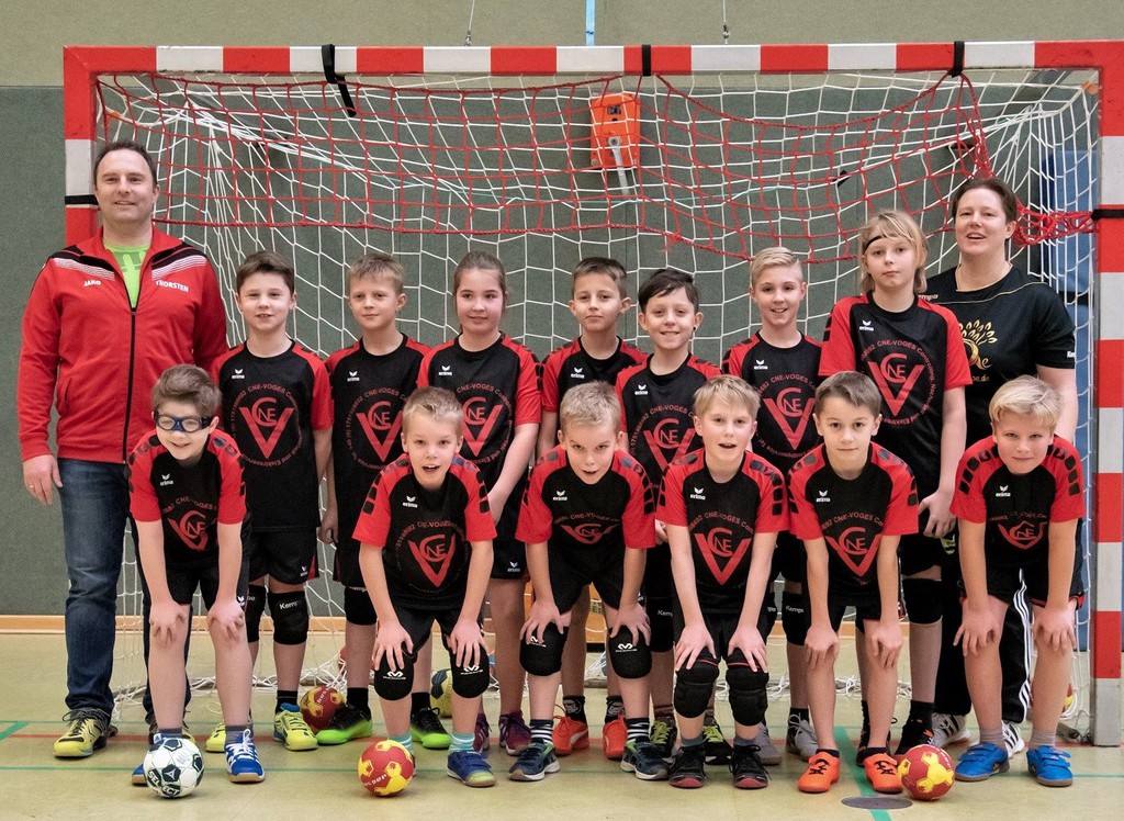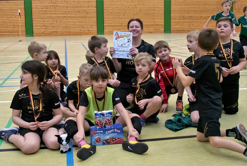 Das zweite Turnier des Spieltages bestritten die E-Jugend-Mannschaften. Hier waren die Teilnehmer auf ziemlich gleichem Level, so dass am Ende bei der Siegerehrung zweimal der direkte Vergleich die Platzierung bestimmte. Auf dem fünften Platz landete der MTV Wolfenbüttel hinter dem FC Viktoria Thiede. Auf den dritten Platz kam SV Eintracht Hiddestorf. Erster wurde mit 6 zu 2 Punkten der Gastgeber HSG Lengede/Gadenstedt vor den Nachbarn aus Groß Lafferde, die mit ebenfalls sechs zu zwei Punkten den zweiten Platz belegten.