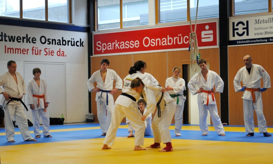 Am 21.01.2012 war eine Abordnung vom TB in Richtung Osnabrück zu einem Lehrgang zur Vorbereitung auf die Bezirks Einzelmeisterschaft schon mitten in der Nacht (07:00 Uhr) aufgebrochen. Tom, Patrick, Adrian und Hans waren sehr begeistert, direkt von der amtierenden Doppelweltmeisterin Mandy Sonnemann trainiert zu werden und einige Ihrer Kniffe und Tricks gezeigt zu bekommen. Weitere Referenten waren Michael Höflich, Sportdirektor NJJV, Alexander Siems, leitender Landestrainer Fighting und Frank Lambrecht, Jugendtrainer. Damit war sichergestellt, dass es eine hochwertige Ausbildung sein würde!
